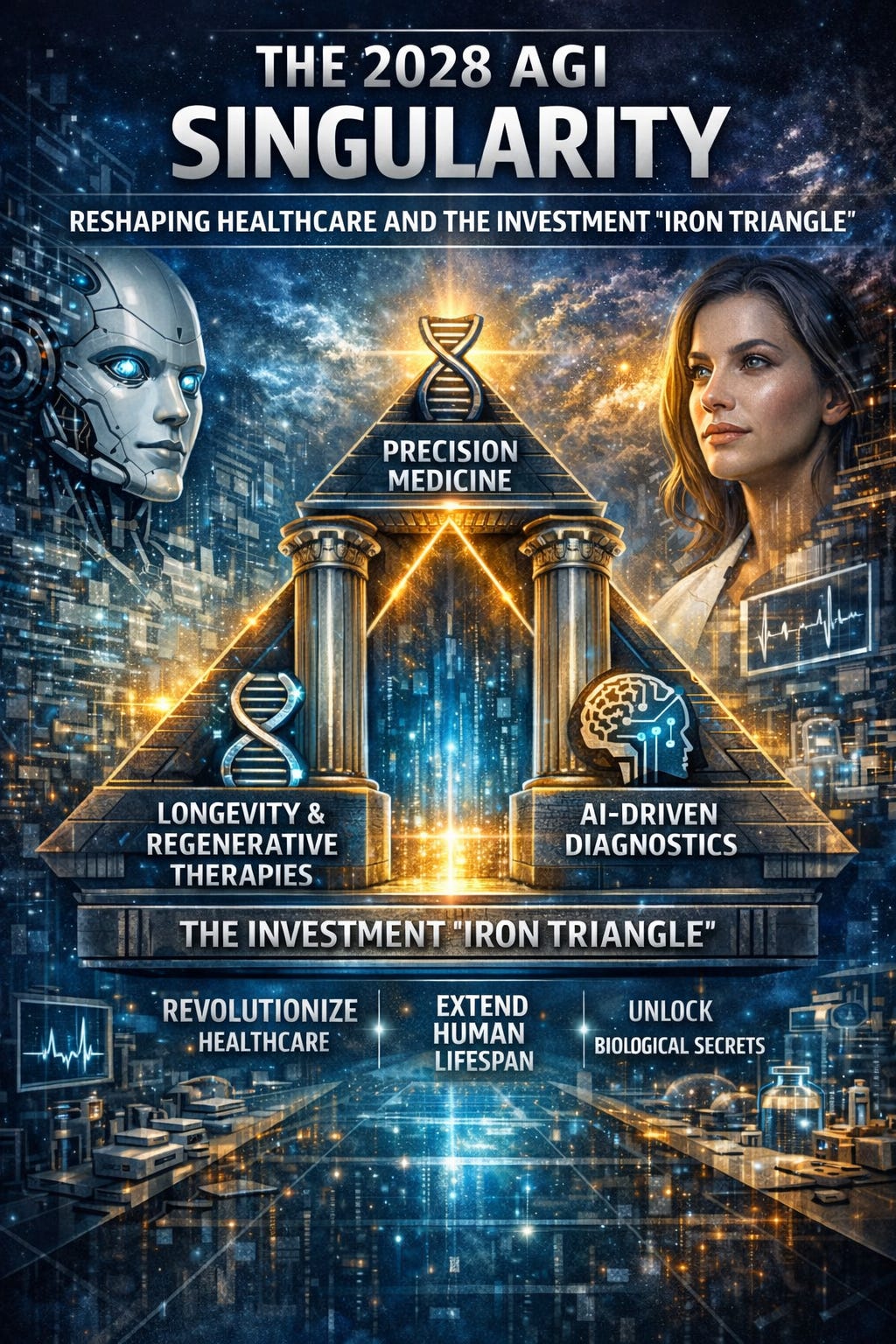 The 2028 AGI Singularity: Reshaping Healthcare and the Investment "Iron Triangle"