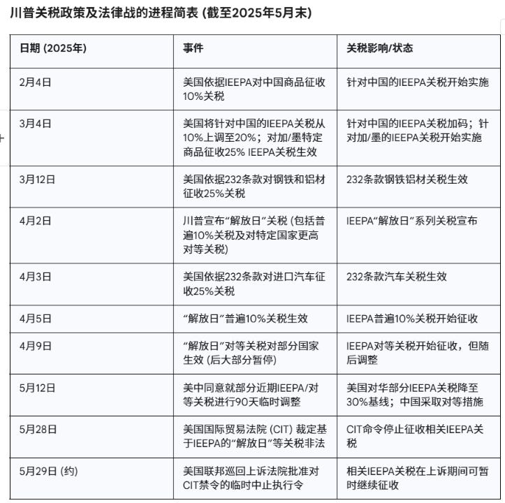 川普政府的关税政策,以其复杂性和多变性构成“关税迷局”,正深刻影响全球贸易。核心争议围绕总统依据《国际紧急经济权力法》(IEEPA)等授权施加的关税,引发了激烈的“法律拉锯战”。美国国际贸易法院(CIT)于2025年5月28日裁定部分IEEPA关税非法,但联邦巡回上诉法院随即颁布临时中止令,允许在上诉期间继续征收,使法律前景充满不确定性 。