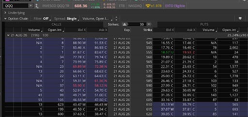 寻找大盘的核心 OI 支撑位(例如目前 QQQ 在 $550 处有巨量支撑, OI: 2,002)。风控逻辑:覆巢之下无完卵。确保你选择的个股行权价,在大盘回撤 10% 触及核心支撑时,依然处于安全区。