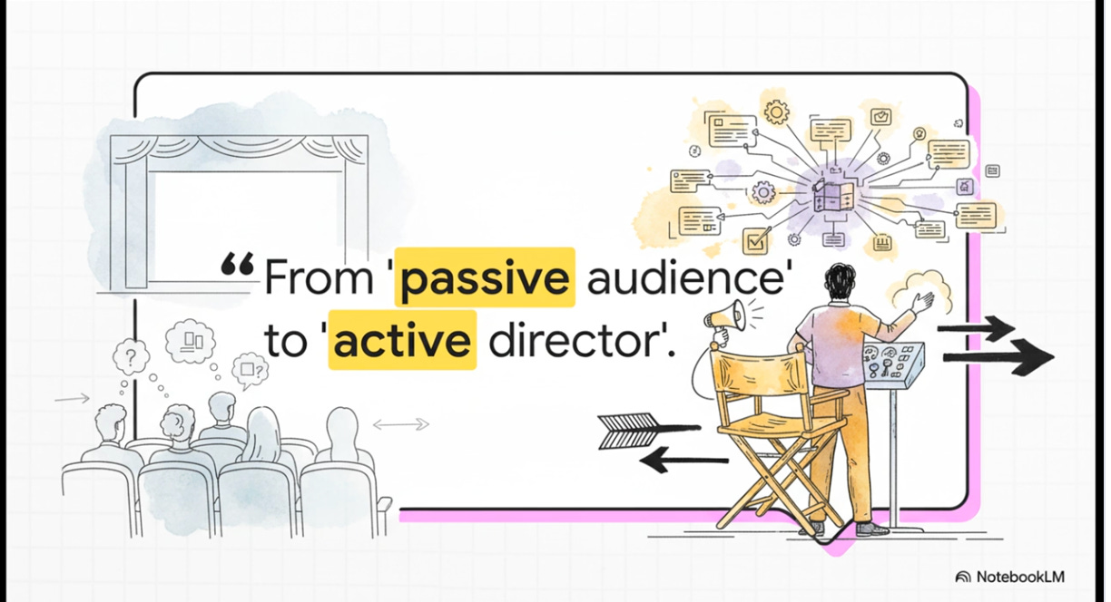 随着 Google NotebookLM 在 2025 年底的重大迭代,我们迎来了“阅读模式”的彻底升级。现在的 NotebookLM 不再只是一个阅读器,而是一个功能强大的多模态演播室。作为严肃的投资者或研究者,我们需要切换视角,从“读者”变为“导演”——通过精准的场面调度(Prompting)和后期制作(Workflow),指挥 AI 为我们生产出信噪比极高的深度内容。