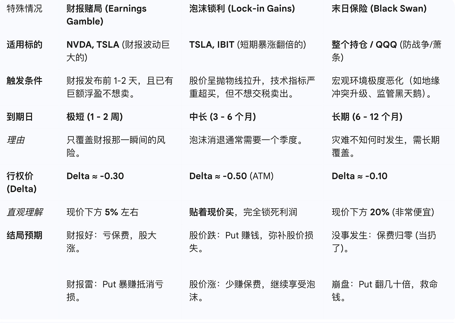 偶尔做: 只有在财报前夕或股价疯狂时,才去 Buy Put 买保险。