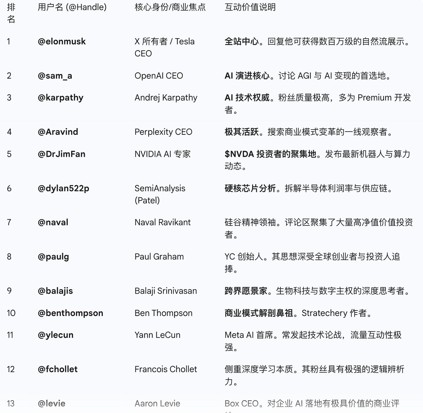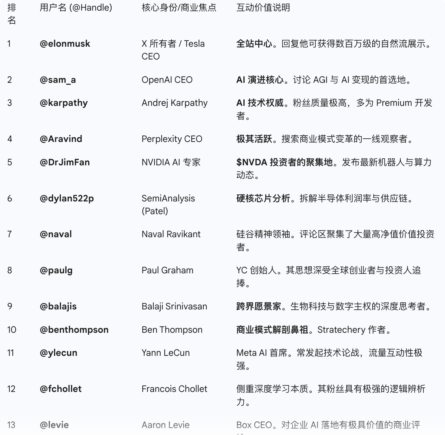策略:通过回复这些账号,触达全球顶尖的开发者、芯片分析师与风投专家。