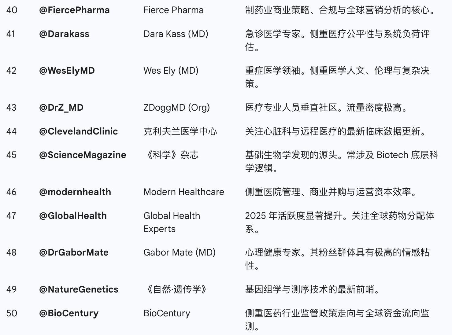 三、 医疗健康领域:临床、药研与生物科技 (Top 50)