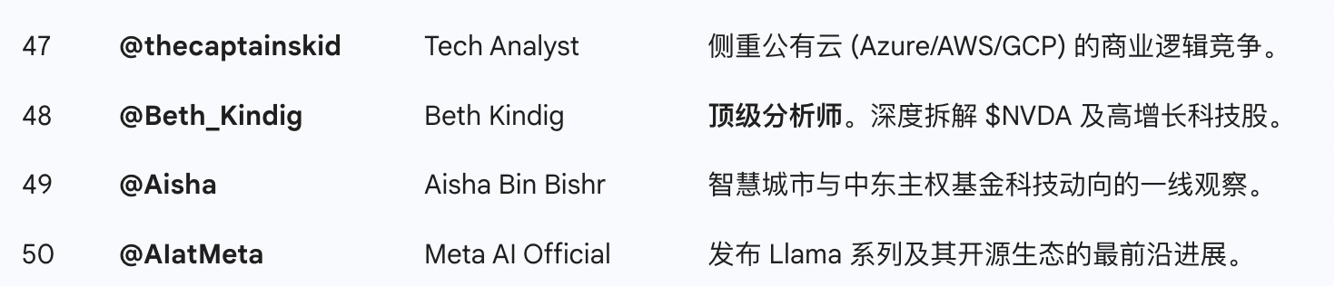 二、 科技与 AI 领域:算力、模型与商业进化 (Top 50)